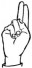 На ћирилици написано КАЋА ВАСИЋ састоји се из 9 слова [?]. Исписано ћириличном једноручном азбуком за глувонеме: